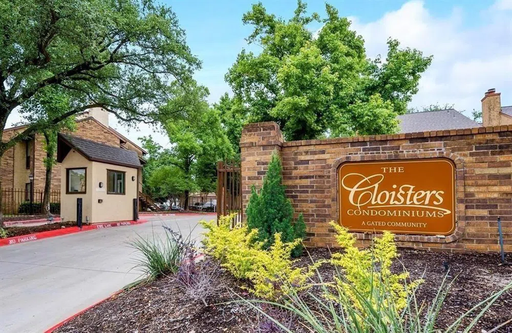 Charming 2 bedroom, 2 bath condo with great location near the Entertainment District and within the gated complex. Freshly painted. Living room with cozy wood burning fireplace, vaulted ceilings and tons of natural light open to dining area and kitchen with great counter and cabinet space. Master suite and bath with dual sinks, garden tub and large closets. Large Secondary bedroom and full bath. Assigned parking in front of condo. The Cloisters offers several pools, hot tub, exercise facilities, racquetball courts, tennis facilities, BBQ areas and more! Close to Dallas Cowboy stadium, Texas Rangers ballpark, Texas LIVE!, Six Flags and Hurricane Harbor. Nearby restaurants, shopping and easy access to I-30 and Hwy 360. Water, sewer and trash are included. NO AIR BNB or other STRs permitted, Primary Residence. VA approved. Not FHA approved. MOVE-IN READY!No investors. Owner occupants only, per HOA. Refrigerator, washer and dryer remain.